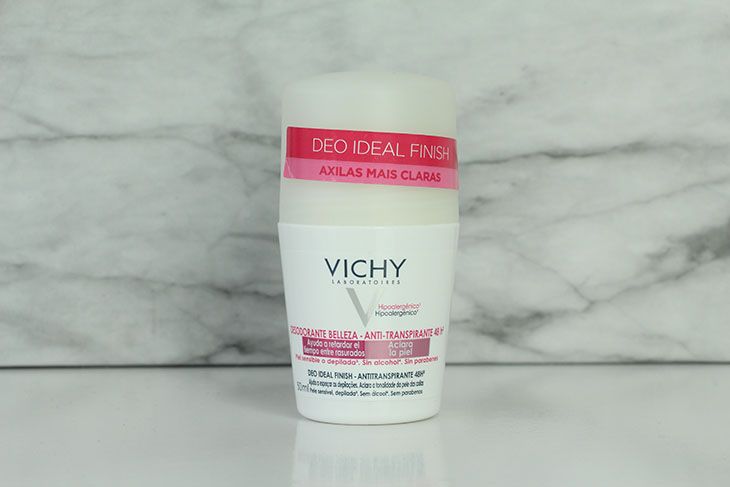 O Deo Ideal Finish é um desodorante antitranspirante indicado para axilas escurecidas e textura áspera com transpiração normal a intensa. De uso diário, ele promete eficácia antitranspirante 48h, clareamento das axilas e suavizar a textura da pele. A marca ainda diz que possui microesferas peroladas que minimizam as imperfeições. Hipoalergênico e com a famosa água termal de Vichy.