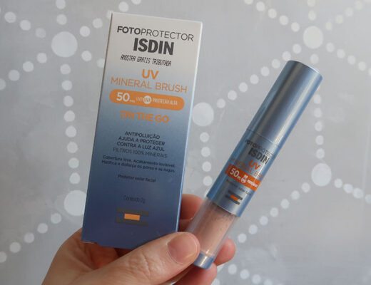 Depois que seca, o acabamento na pele fica natural, nem totalmente matte nem com brilho excessivo. É o tipo de protetor que se adapta bem à rotina, já que não altera muito a aparência da pele. Ao toque, dá para perceber que há uma leve película sobre o rosto, mas nada que incomode ou pese durante o uso. Essa sensação não chegou a me incomodar na pele oleosa.