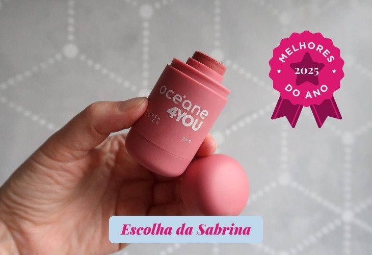 Meu blush favorito de 2025 foi a versão em bastão do blush 4You da Océane que eu testei na cor Bubble. Esse é um blush fácil de passar e que esfuma com tranquilidade. Além disso, ele entrega cor sem ser de uma forma exagerada e com acabamento sequinho. Quem tem a pele oleosa pode ficar sossegada que ele não deixa o rosto pegajoso. Aprovado.